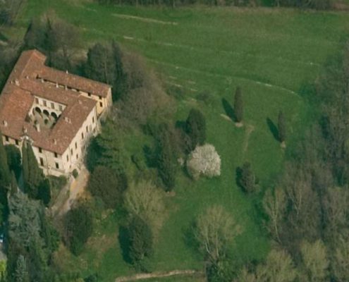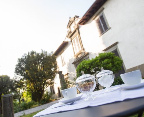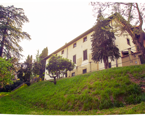 Complessivamente l’intera area di pertinenza è di circa 35.000 metri quadrati.Sul lato ovest è riconoscibile un giardino all’italiana di circa 200 metri quadrati di pianta rettangolare delimitata da siepi in bosso.